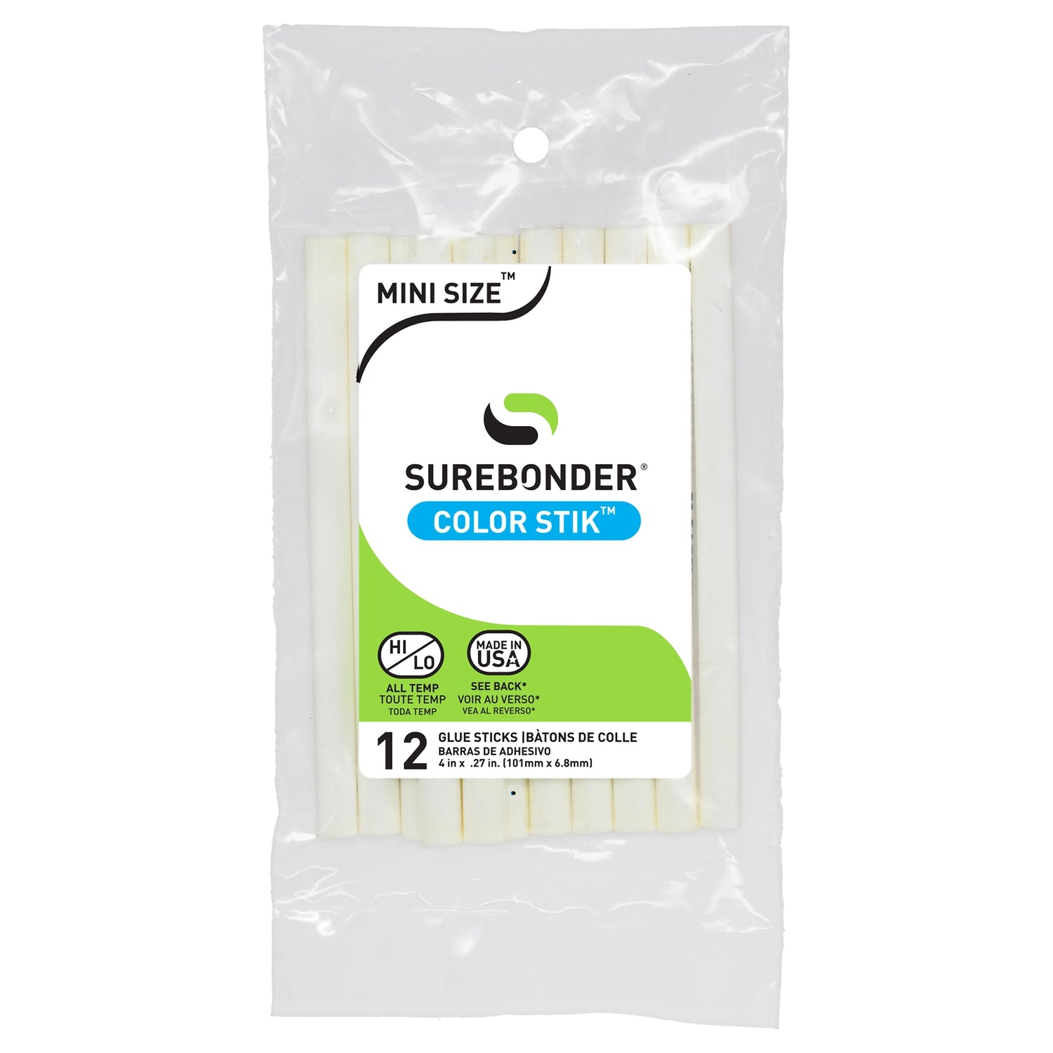 Keep your projects polished and precise with this 12-pack of 4-inch white mini hot glue sticks. Ideal for clean finishes, subtle repairs, and all-purpose crafting, the neutral color blends easily into any design. Made to fit most mini size glue guns, these sticks bond securely to materials like foam board, felt, construction paper, plastic, and fabric, perfect for everyday DIY with a smooth, seamless look.