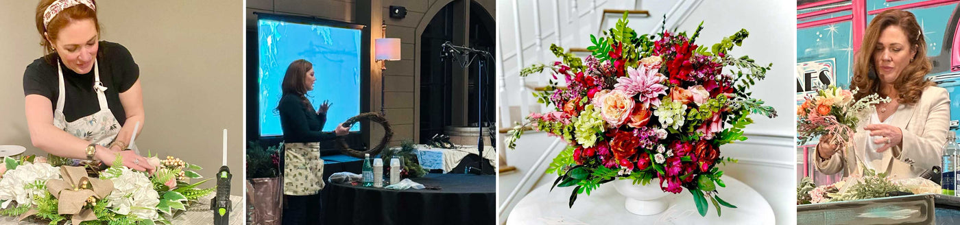 There is inspiration all around us! I’m inspired by gardens, paintings, and especially the people I design for. Books like Flower Flash by Lewis Miller and French Blooms by Sandra Sigman push me to grow, and meeting Sandra and attending her design masterclass was a highlight. I also love the connections this work brings—teaching a virtual workshop in Australia, designing at Wreath Makers Live in Texas, and building lasting friendships with clients across the country. The hardest part is that being a creator means wearing many hats—designing is just one piece. Running a small business involves content creation, learning systems like Shopify, Etsy, and Canva, plus navigating cameras and streaming equipment. It can feel overwhelming, but I remind myself (and others) that this journey is a marathon, not a race. When you feel stuck, give yourself grace—no one has it all together all the time.