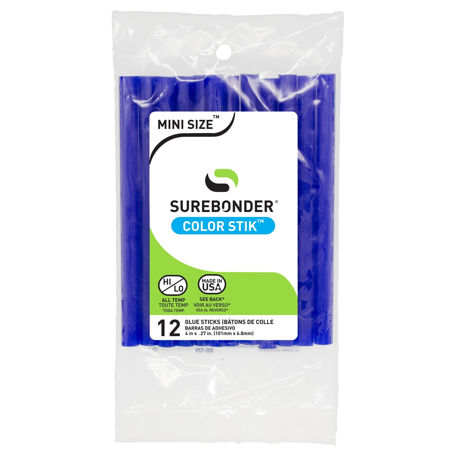 Add a bold touch to your next project with this 12-pack of 4-inch blue mini hot glue sticks. Great for school projects, decorations, quick fixes, and DIY crafts, the strong color brings personality to every creation. Designed for most mini size glue guns, they bond securely to materials like felt, construction paper, foam board, plastic, and ribbon.