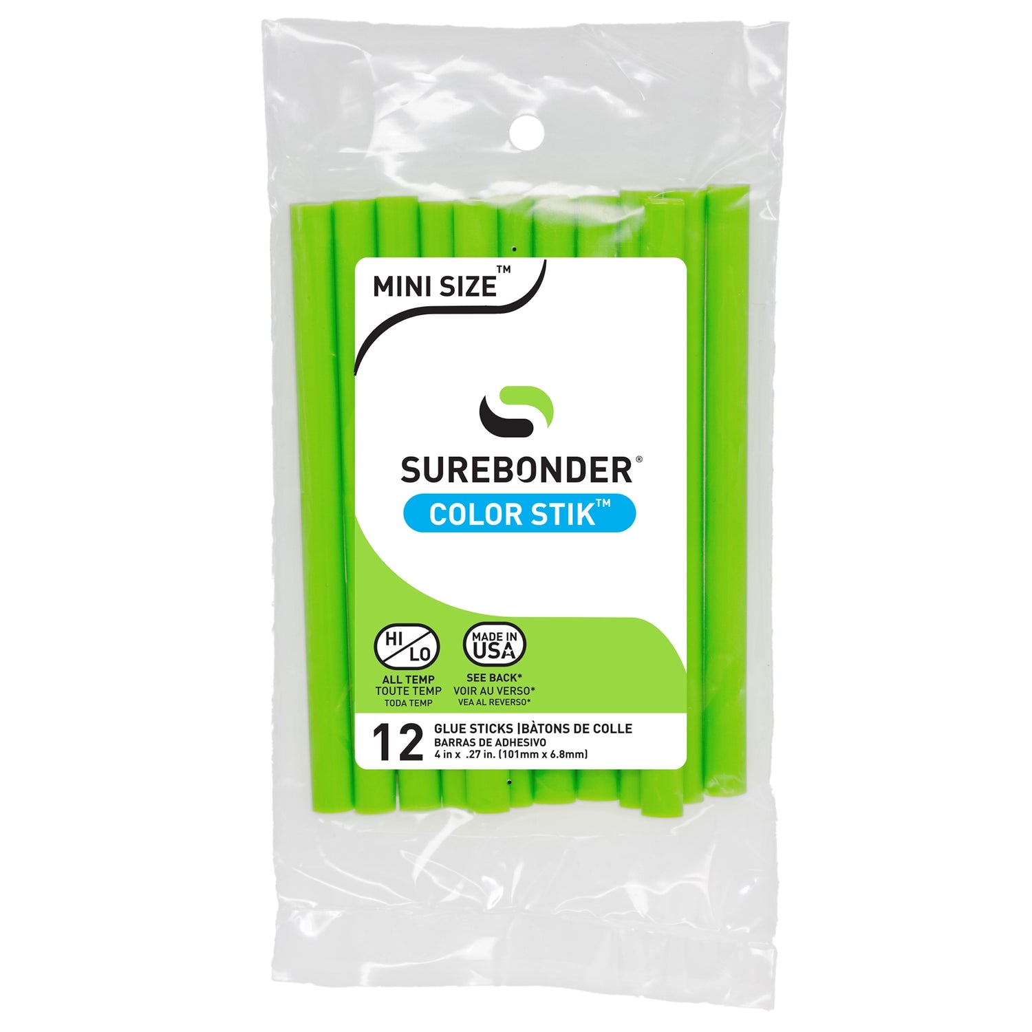 Give your crafts a vibrant boost with this 12-pack of 4-inch bright green mini hot glue sticks. The bold color is great for playful decor, themed DIY projects, handmade accents, and everyday fixes. Designed to fit most mini size glue guns, these sticks bond securely to materials like foam board, felt, construction paper, ribbon, and plastic.