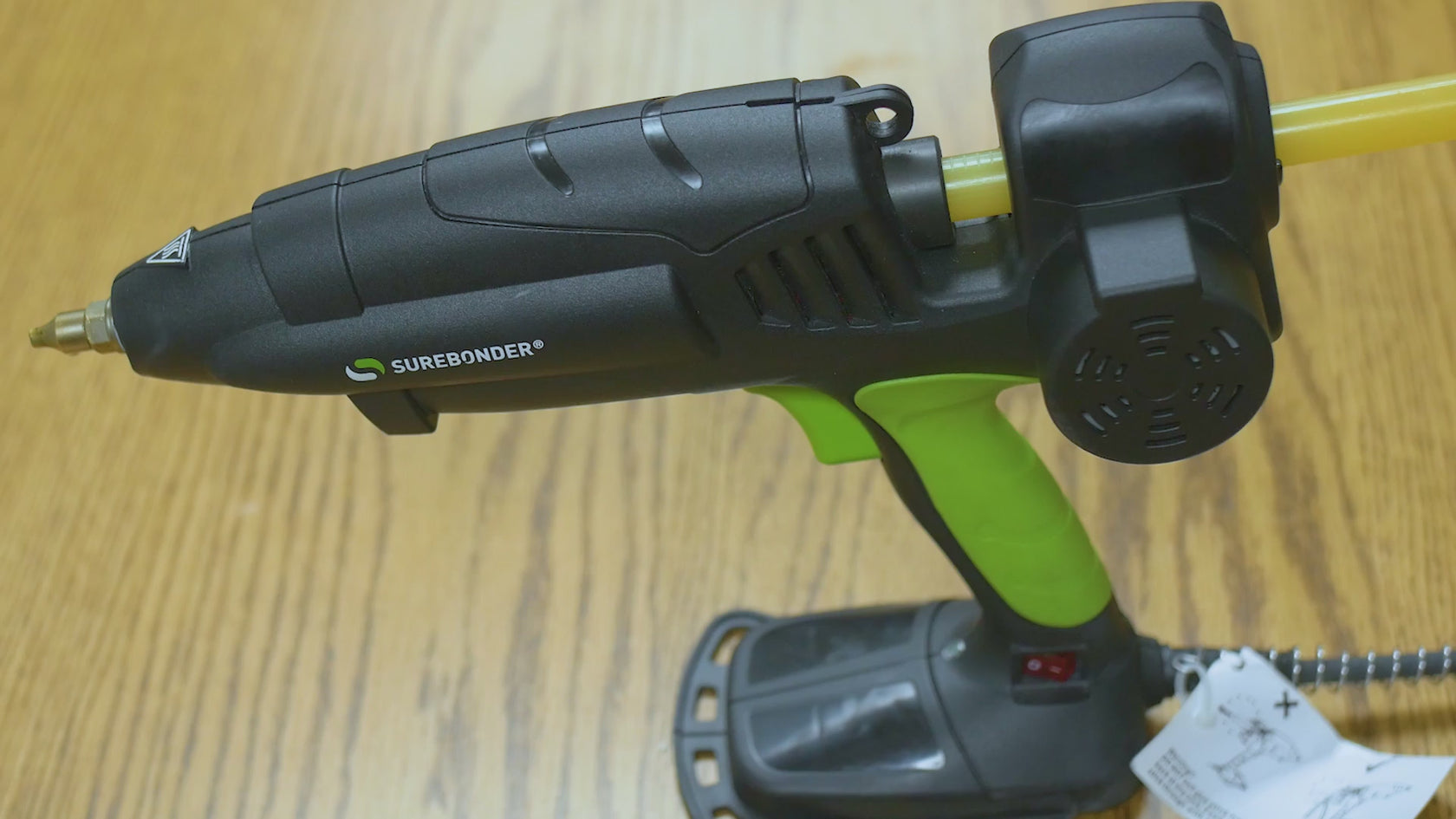 Surebonder MGG-800 is an 800 Watt Motorized Professional Heavy Duty Hot Glue Gun. It uses oversized, 5/8" diameter glue sticks and has 800 watts of continuous melting power to keep up with oversized or demanding jobs. This glue gun is the ultimate combination of speed, power, and precision for maximum output with minimal user effort, and best of all, No Air Assist is needed! Features twin motors that dispense over 10 lbs. of adhesive per hour, a lighted on/off switch, a rubber grip handle, and an auto-reverse feature that prevents clogging of the nozzle and helps to eliminate glue drips. Includes two removable stands and has three different standing positions.