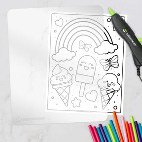 Choose your design - Grab a coloring book page or dream up your own design, then slide it under the silicone pad.